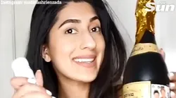 Celebra pe Instagram, Madina Shrienzada a turnat continutul din sticla de sampanie intr-un bol, iar mai apoi si-a aplicat bautura pe podoaba capilara. Dupa ce s-a spalat cu sampanie pe par pentru prima data, ea a marturisit ca a vazut instant diferentele.